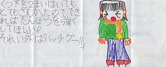 アンケートで寄せられらた絵や文の中から 紹介します。みなさん、ありがとう! |