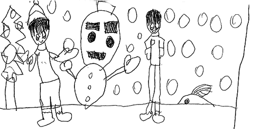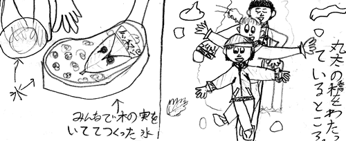 | 氷を使って芸術作品をつくったのかな?橋を渡っているところ、とっても上手にかけているね。 | |