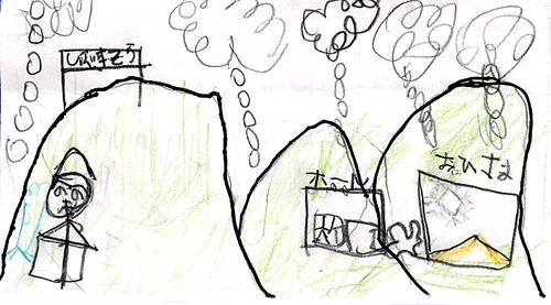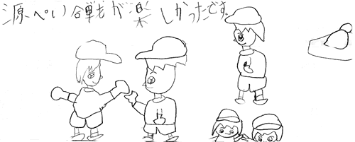 | これは、「王さん」をやっているのかな。元気にあそんでいるようすが、とてもうまく描けているね。 | |