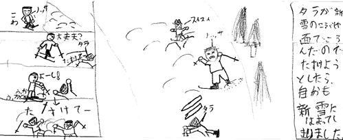 | 三日間、たくさん練習したんだ。うまくなったって思えると、どんどんスキーが好きになるよね。 |