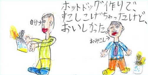 | ホットドック作りって楽しいよね。少しくらいこげててもおいしいんだよね。 | |