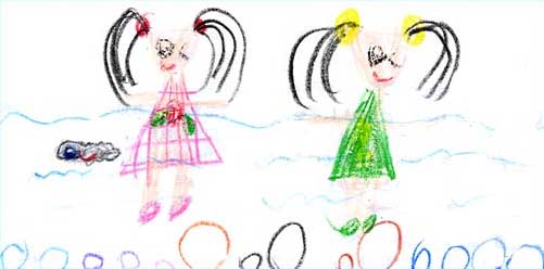 | とっても気持ちよさそうに泳いでいるね。川の中におたまじゃくしがいたのかな? | |