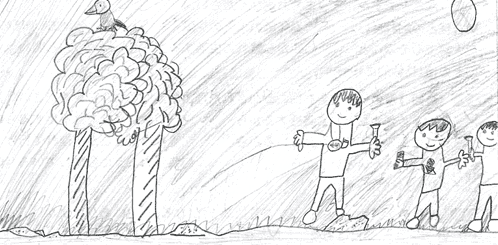 | わぁ!大きな木だね。木登りをしたのかな?とっても楽しそう。虫もいたんだね。 | ||