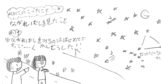 | 星が数えきれないくらいたくさん見えたんだね。流れ星におねがいごとはしたのかな? | |